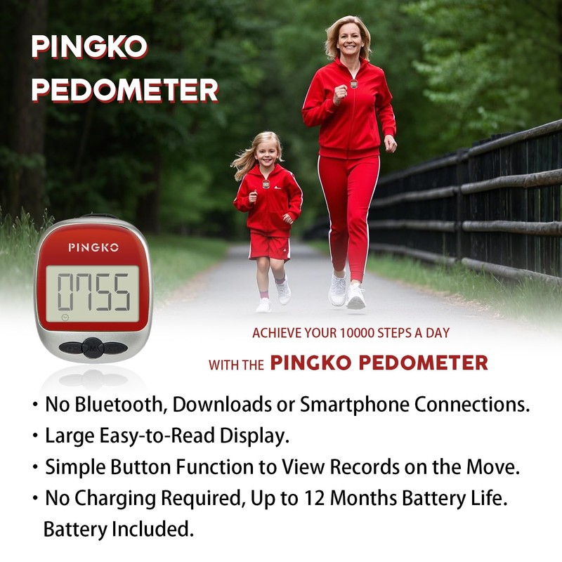 PINGKO Best Pedometer for Walking Accurately Track Steps Multi-Function Portable Sport Pedometers Step/Distance/Calories/Counter - Red…