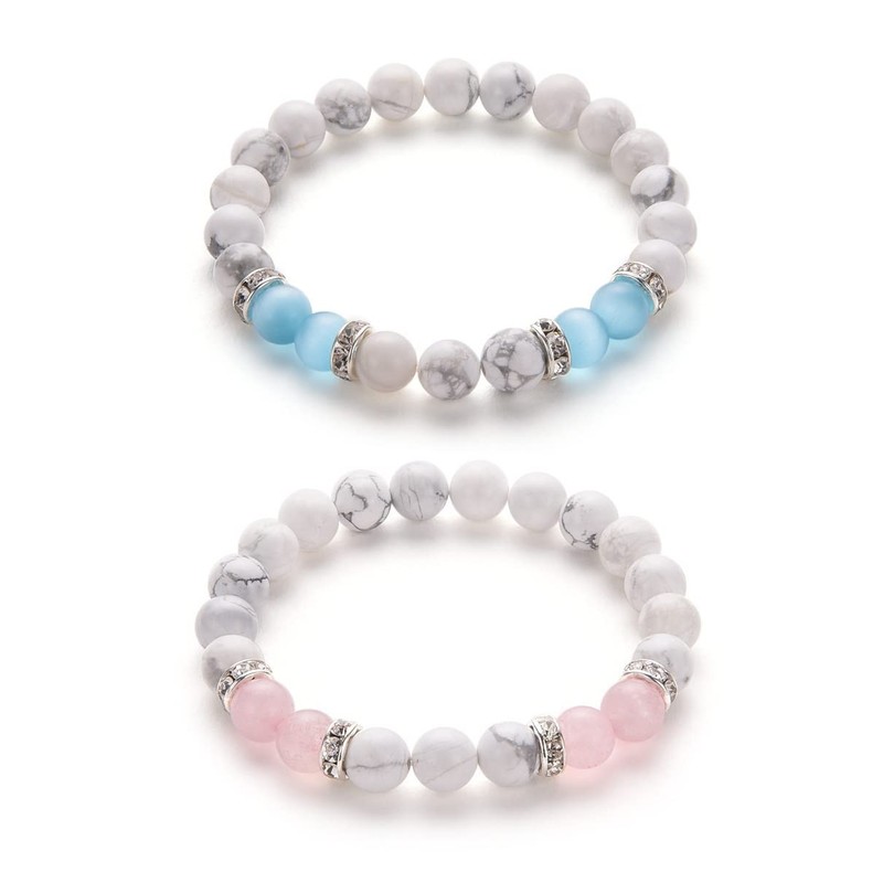 - ♥Material:Howlite and Rosa crystal,natural stone bead possess low density and light weight.adjustable design,The bracelets give you a different choose and feelings. Applicable:yoga bead bracelet,meditation bracelet,healing bracelet.Good matching for men and women.