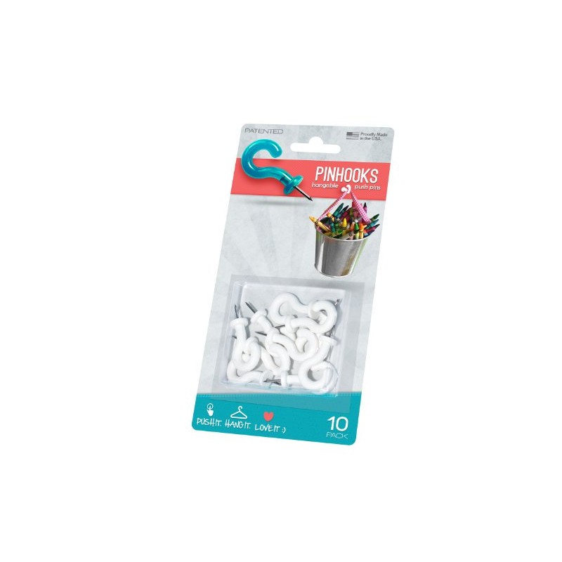 Pinhooks 10101 10-Pack Push Pin Wall Hooks, White