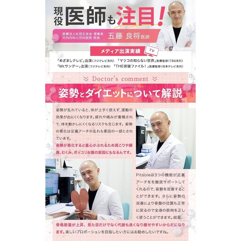 [Pink 2 Pair Set + Deodorizing Sheet Set] Pit Sole, Insole, Posture Support, ...