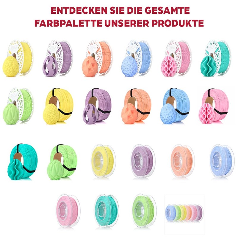 - DELICATE PASTEL COLORS The PLA pastel filament offers a palette of gentle, spring-inspired colors that add a touch of elegance and tranquility to your 3D prints, highlighting them with subtle charm.