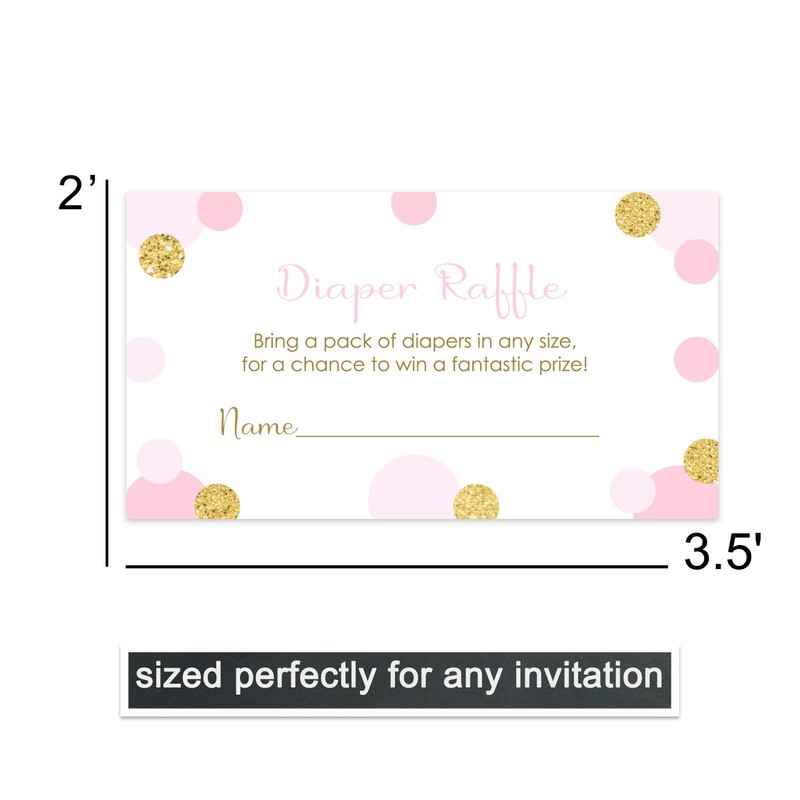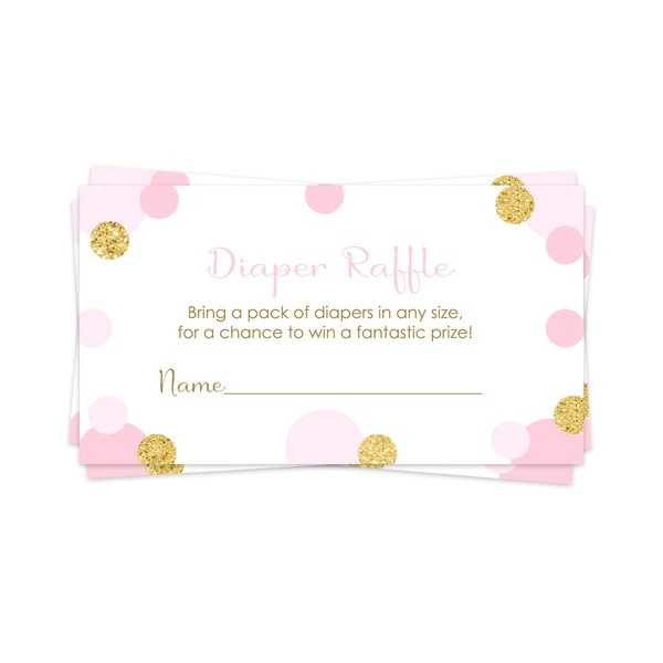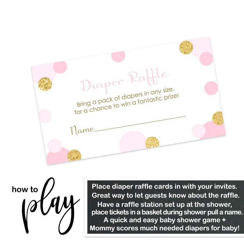 - Diaper Raffle Drawings: add some fun to the baby shower and keep the party going with this pack of pink and gold diaper raffle tickets printed with abstract dot design. A royal choice for baby shower and gender reveal.