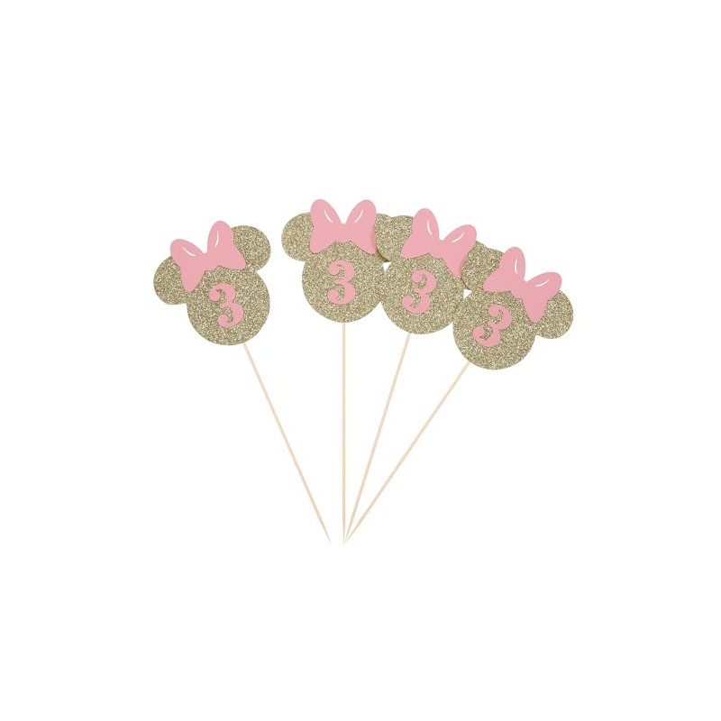 - Pink and Gold Minnie Inspired Centerpiece Sticks for Baby Shower Girl Third 3rd Birthday Party Decorations Pack of 8