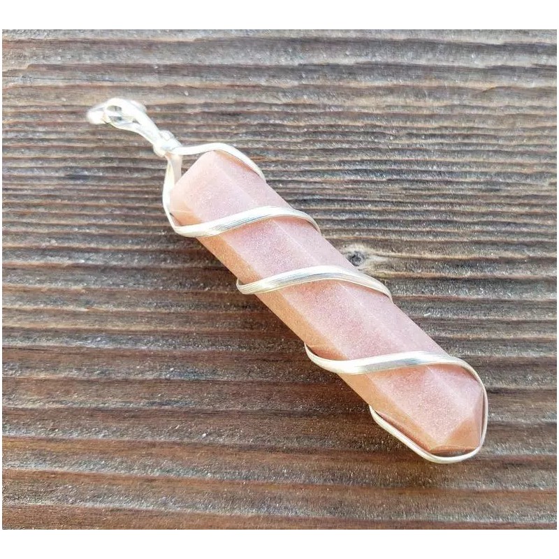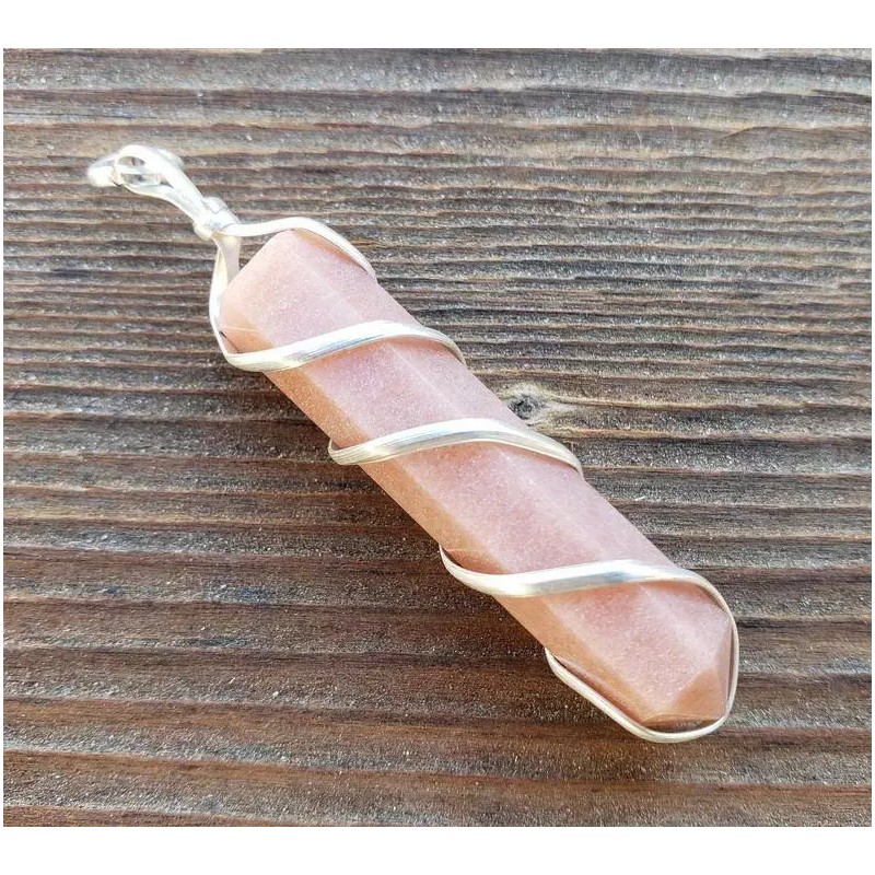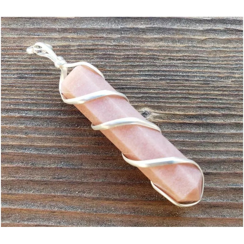 PINK AVENTURINE SPIRAL WIRE WRAPPED PENCIL POINT PENDANT GEMSTONE