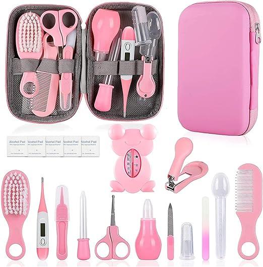 Pink Baby Grooming Kit - Infant Safety Care Set with Hair Brush, Comb, Nail Clipper, Nasal Aspirator - Newborn Essentials for Girls and Boys