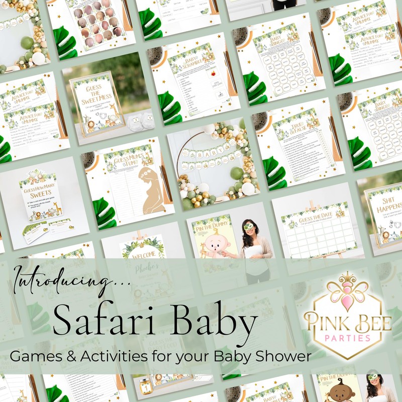 Pink Bee Parties 2 x Safari Themed Baby Shower Banners 'BABY SHOWER' - 9 Flag