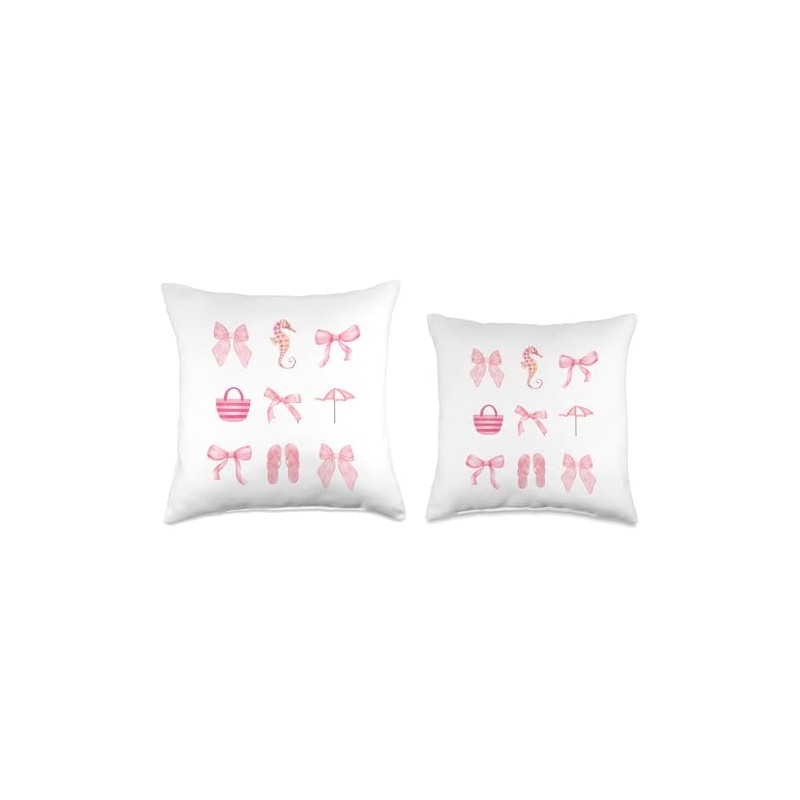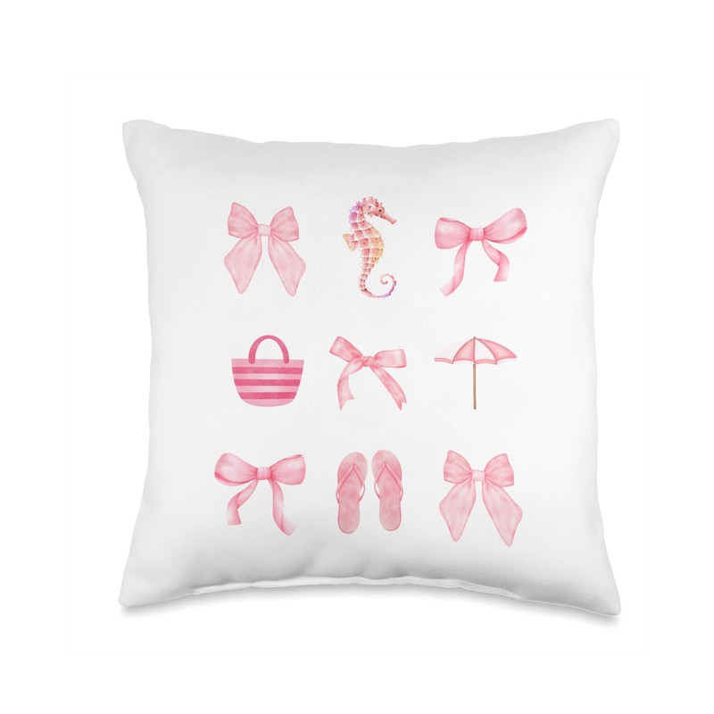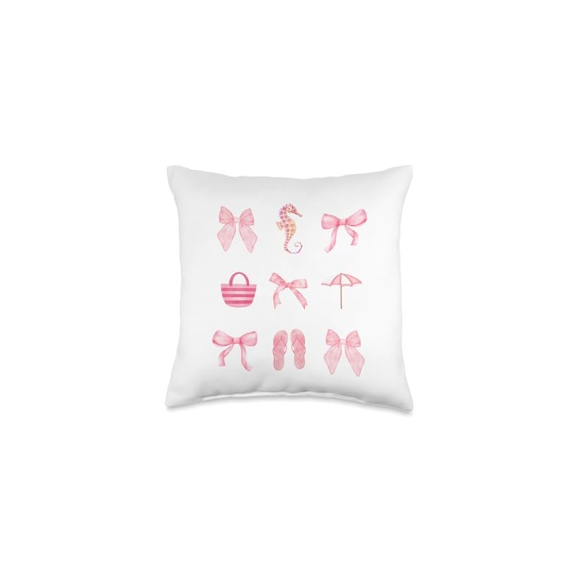 Pink Bow Cute Coquette Beach Clean Girl Aesthetic Throw Pillow