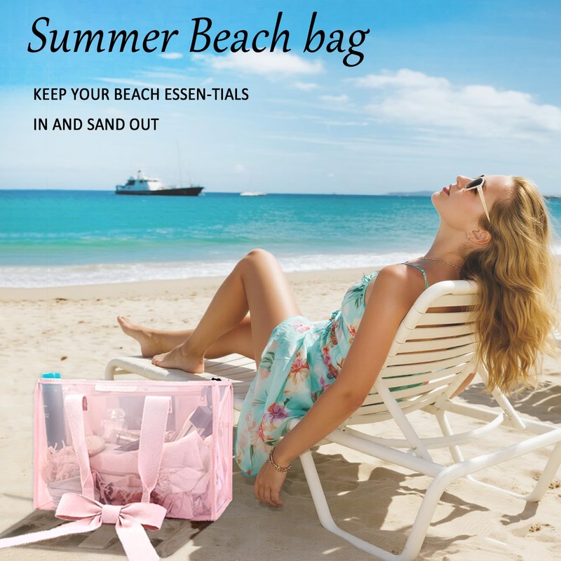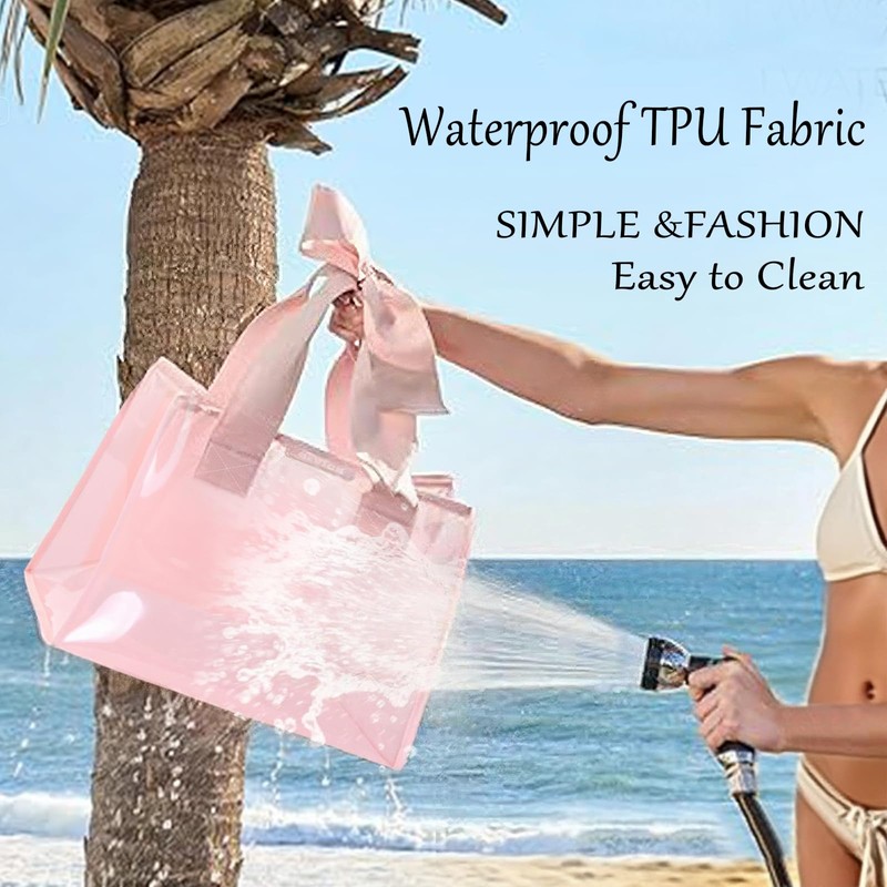 Waterproof TPU material bow tote bag, 12"17"8" inches in size, an indispensable tote bag for summer beaches