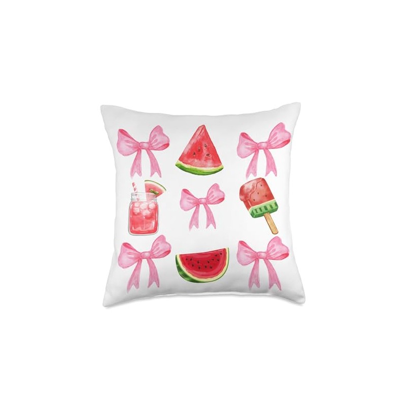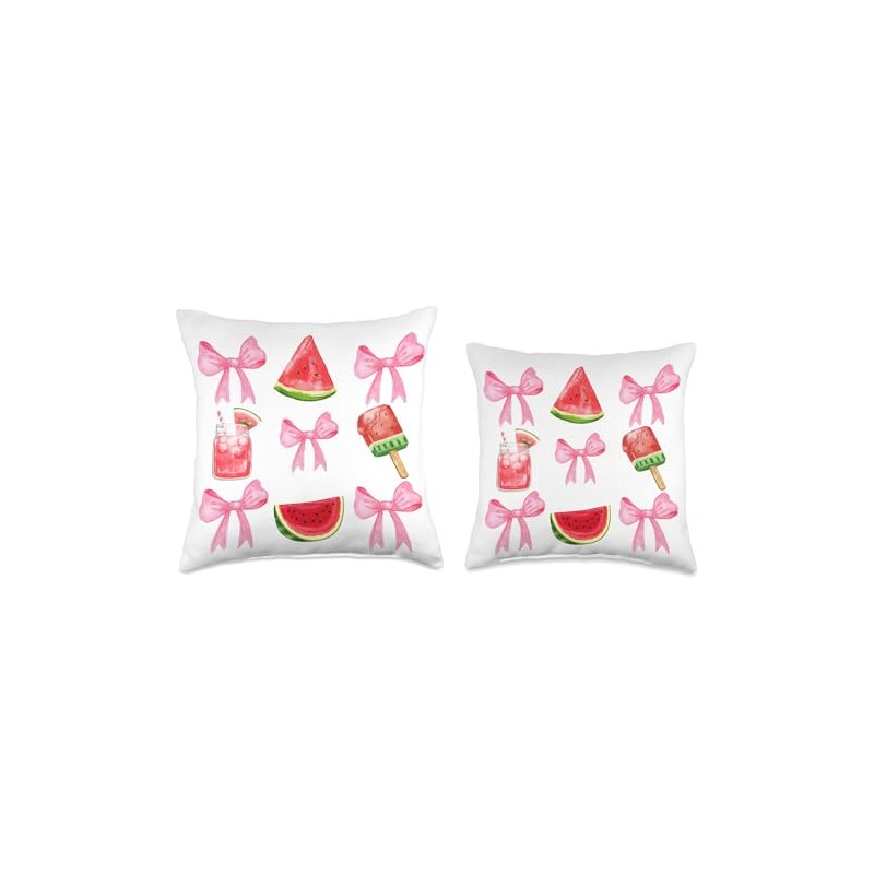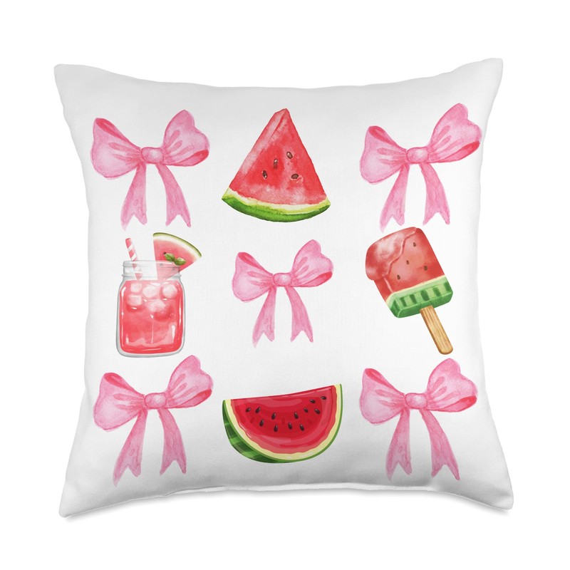 Pink Bows Cute Coquette watermelon y2k Clean Girl Aesthetic Throw Pillow