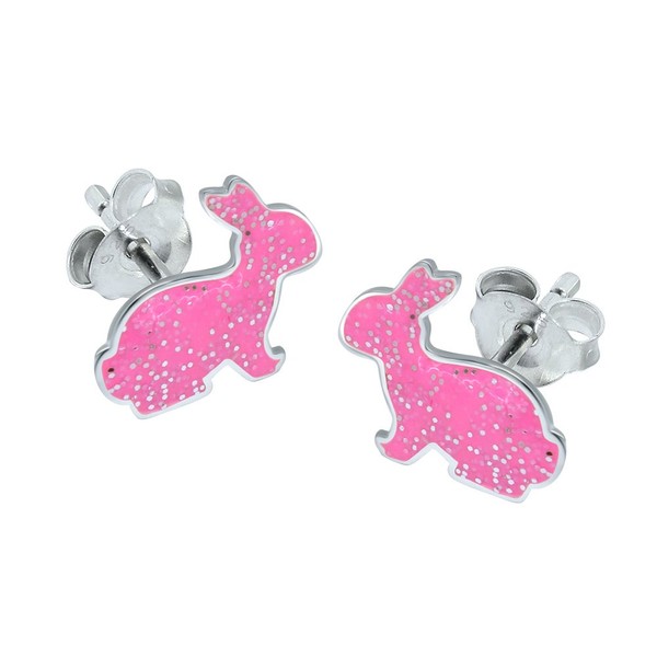 Pink Bunny Rabbit Earrings with Sparkly Glitter - 925 Sterling Silver