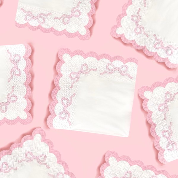 Pink Coquette Bow Party Napkins | 5" Cocktail 3-Ply 50 Pack | Sweetie Soirées | Pink Bow Theme Party Decorations | First Birthday Baby Shower She's Tying the Knot Bachelorette Party | Premium Quality