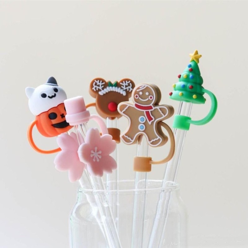 Pink Cute Silicone Straw Tips Cover Silicone Reusable Drinking Straw Tips Lids Colorful Straw Plugs for 8 mm Straws Kitchen Utensils and Gadgets (Not include Straw)(cherry blossoms)