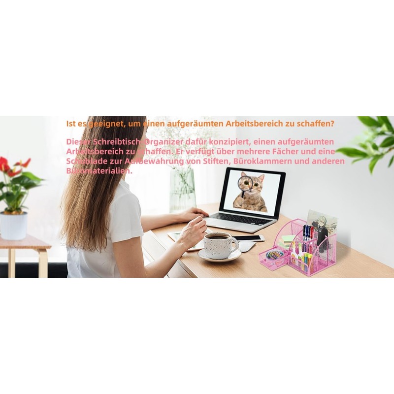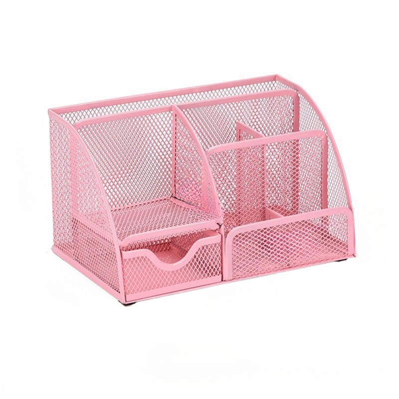 - Pink desk organiser, mesh metal office organiser with drawer and pen holder for pens, stapler, space-saving pens organiser to keep your work area tidy and organised