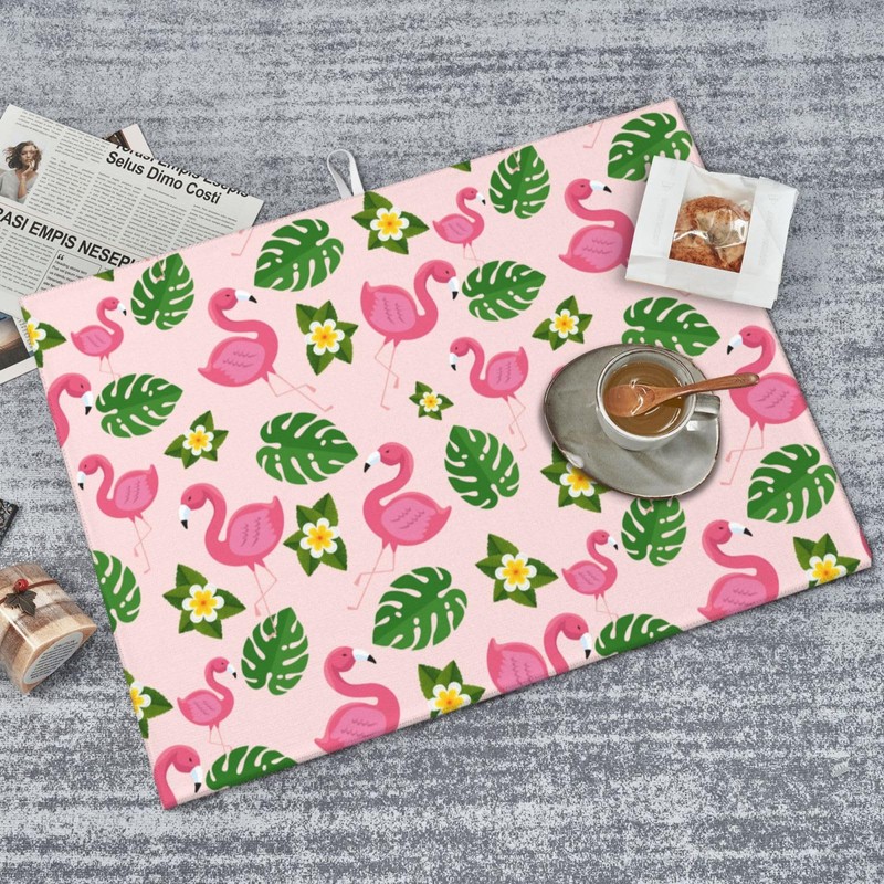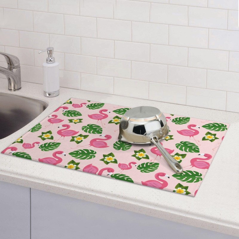 Pink Flamingos Dish Drying Mat for Kitchen, 18 x 24 Inch with Super Absorbent Reversible Microfiber Dish Drying Pad Dish Rack Pad Drainer Mat for Coffee Bar