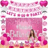 Pink Happy Birthday Party Decorations Set for Girls,Include Backdrop Banner,Balloons,Party Banner,Hanging Swirl,Honeycomb Centerpiece,Sash,Pink Princess Birthday Party Decor for 10th 16th 18th 21st