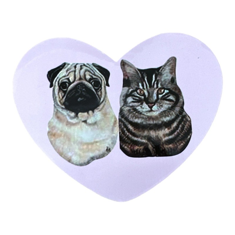 Pink Heart with a Pug and Cat Magnet (5" x 3")