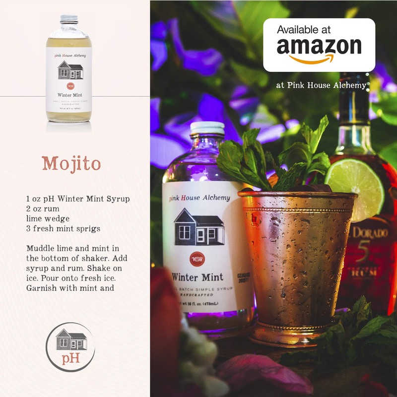 Pink House Alchemy Winter Mint - 16 oz Simple Syrup Cocktail Drink Mix - Use to Flavor Coffee -Shaved Ice - Dessert Topping - Using Only Fresh Mint Leaves (WM16)