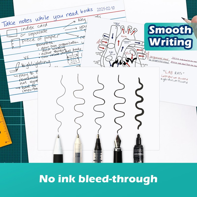 • Solid 4x6 index cards heavy weight with 220gsm thick cardstock for smooth writing, durability and no ink bleed-through