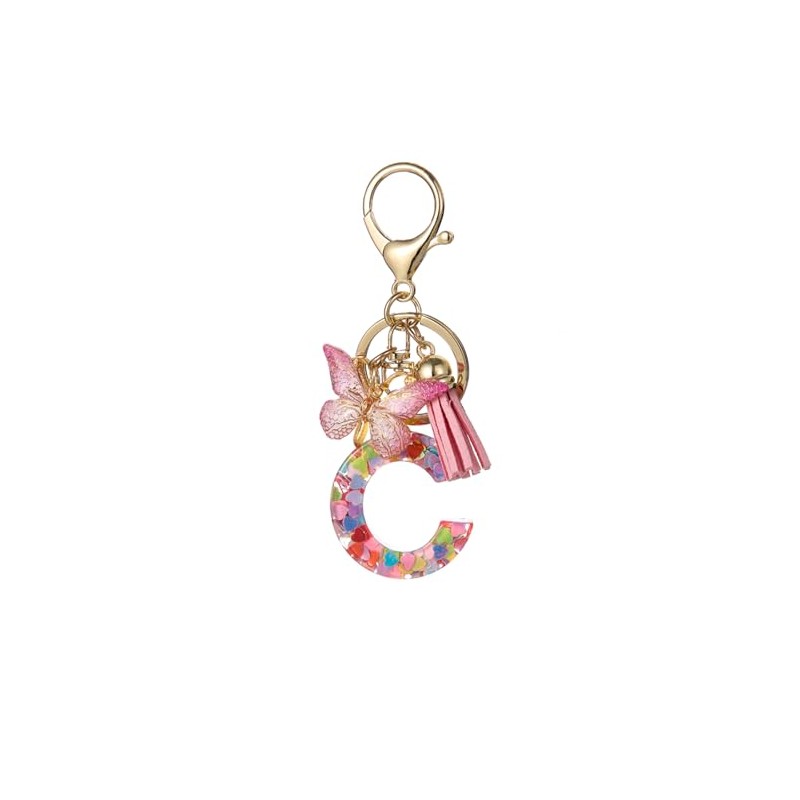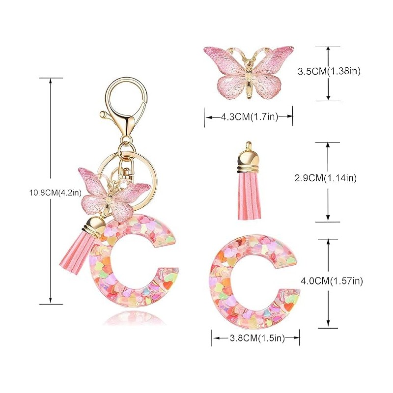- Adorable & Personalized Design:This letter keychain features a beautifully crafted pink resin letter "C" adorned with delicate butterfly charms and elegant tassels. Perfect for adding a personalized and stylish touch to your keys or bag.