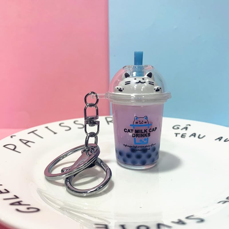 - Adorable Design: This keychain features a cute, miniature milk tea cup with a cartoon cat figurine on top, adding a playful and whimsical touch to your keys.