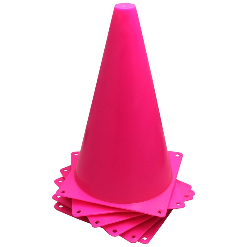 Set of 10, Marker cone can be used to mark boundaries or set up training courses. These cones are made of LDPE (Low Density Poly Ethylene), highly visible fluorescent bright pink color.