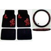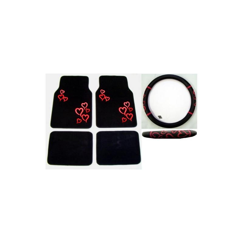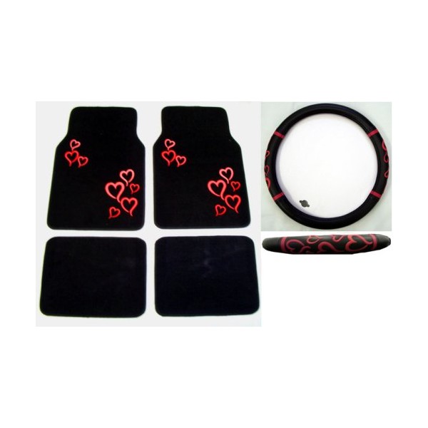 Pink Multi Color Hearts Combo - Front & Rear Carpet Floor Mats & Steering Whe...