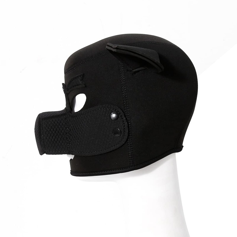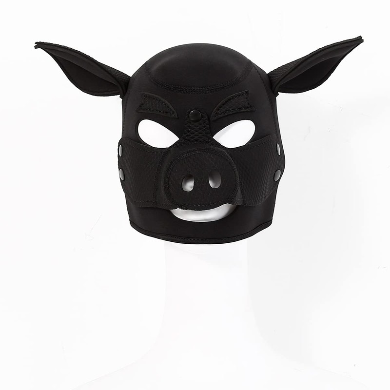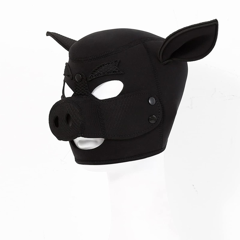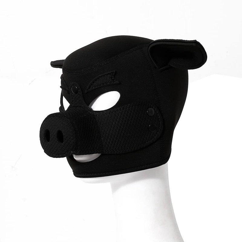 - The mask has a removable pig snout and snap closure.