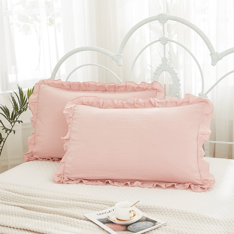 Pink Pillow Shams Baby Pink Ruffle Standard Pillowcases Cute Pillow Cover Set of 2 Shabby Chic Soft Microfiber Pillowcases 2 Pack (Queen (20''x30''), Pink)