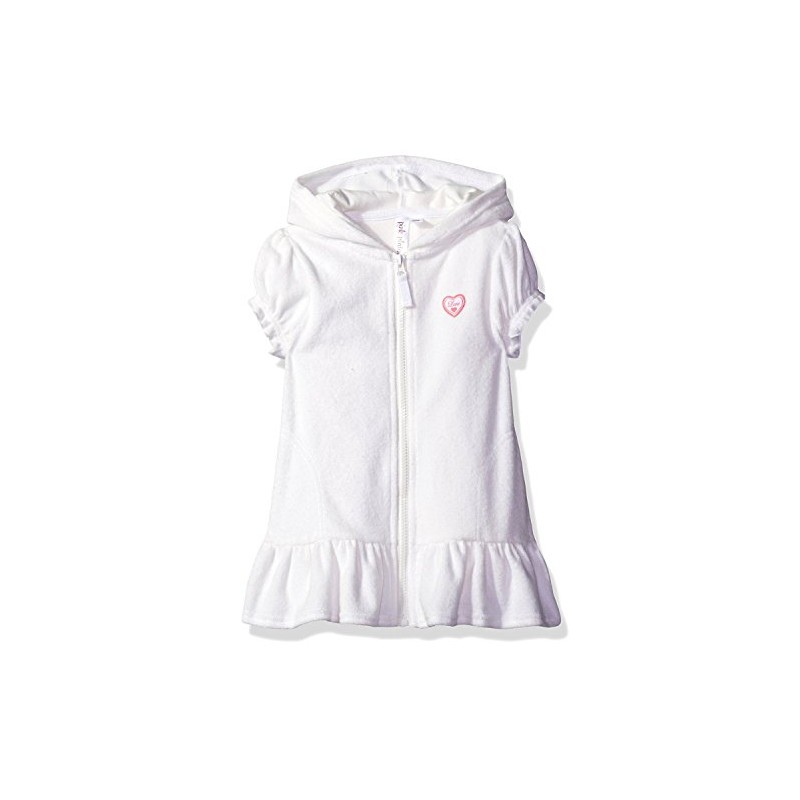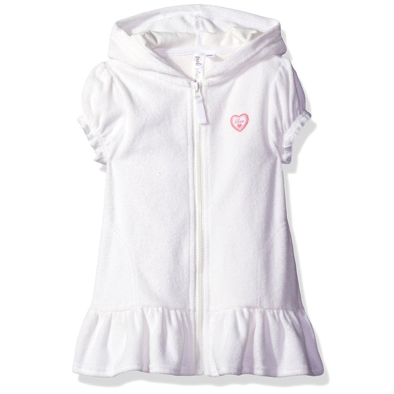 Pink Platinum Girls Swim Cover Up - Full Zip Hooded Ruffled Kids Terry Cloth Bathrobe, Swim Cover Up Dress for Girls (2T-16), Size 7-8, White