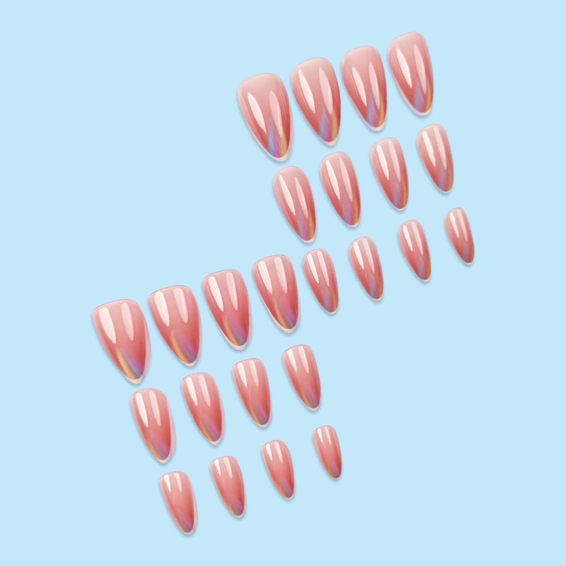 Pink Press on Nails Almond Laser Fake Nails Medium Gradient False Nails with ...