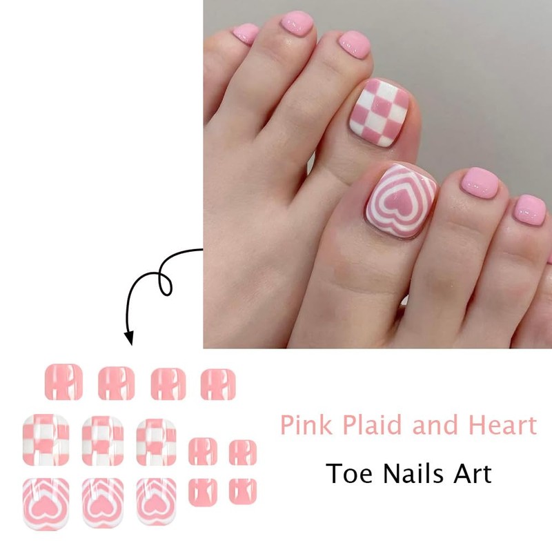 - Package Contents:24Pcs chessboard press on toe nails +1 Nail File + 24Pcs Jelly Glue Stickers+1 Wooden Stick. No matter the size or width of your nails, you can choose the most suitable summer false toenails for yourself