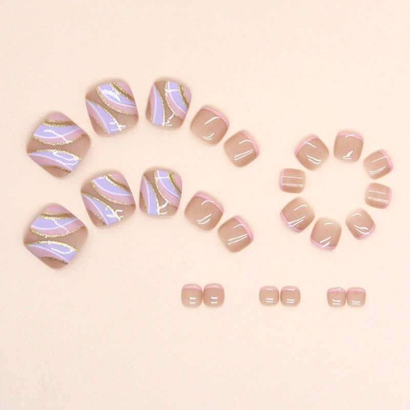 Pink Purple Glitter Wavy Stripe Fake Toenails Short Square Press on Toenails Glossy Full Cover Toenails for Women DIY Charm Manicure Reusable Acrylic Toe Nails