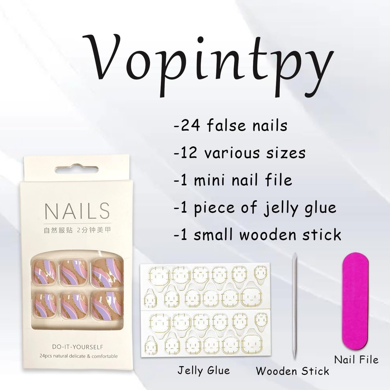 - 【Package & DIY Nails】The package contains 24 pieces of toe nails of different sizes, 1 mini nail file, 1 small wooden stick, and 1 piece of nail glue sticker. (Jelly glue can last about 3 days or more, glue remains longer)