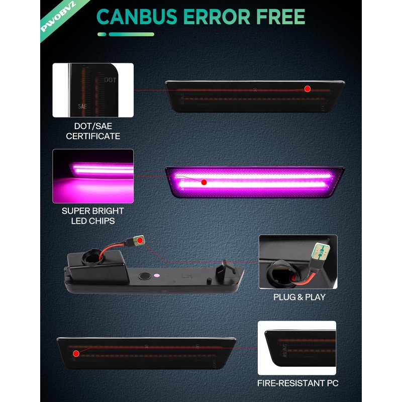 - FUNCTION: charger side marker lights are designed with 2-row pink purple LED strips; Powered by high power white SMD LED diodes; Offer 5X brighter than OEM side markers; Give your ride a modern and pink purple LED appearance with enhanced safety & visibility at night
