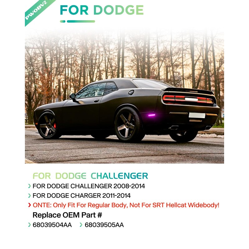 - COMPATIBLE LIST: led side marker lights for Dodge Challenger 2008-2014; for Dodge Charger 2011-2014; Replacement Part Number:#68039504AA,68039505AA; Please check the fitment list before purchasing