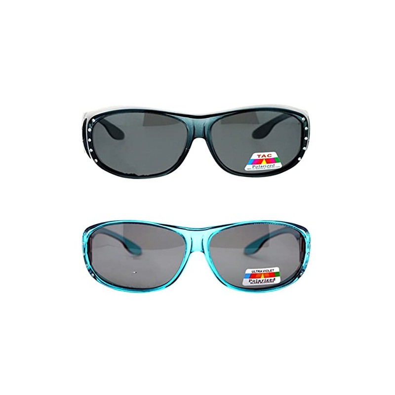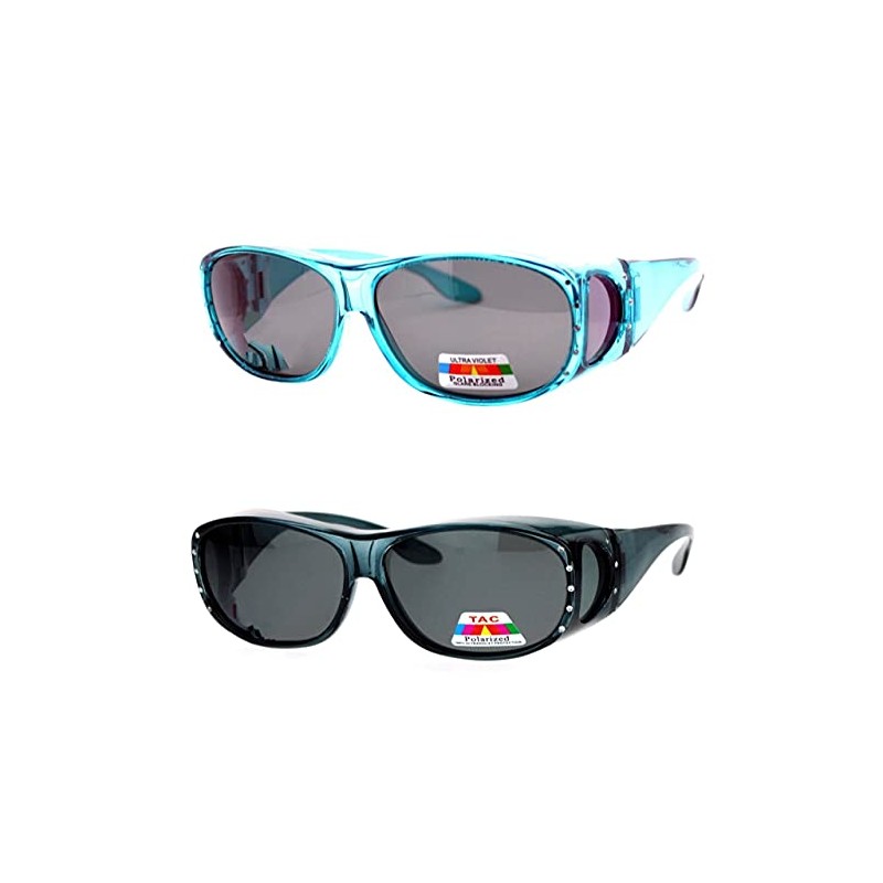 Pink Ribbon Shades, Inc. 2 Pair Womens Rhinestone Anti Glare Polarized Fit Over Reading Glasses Sunglasses Oval Rectangular (2 Pair Gray/Teal)