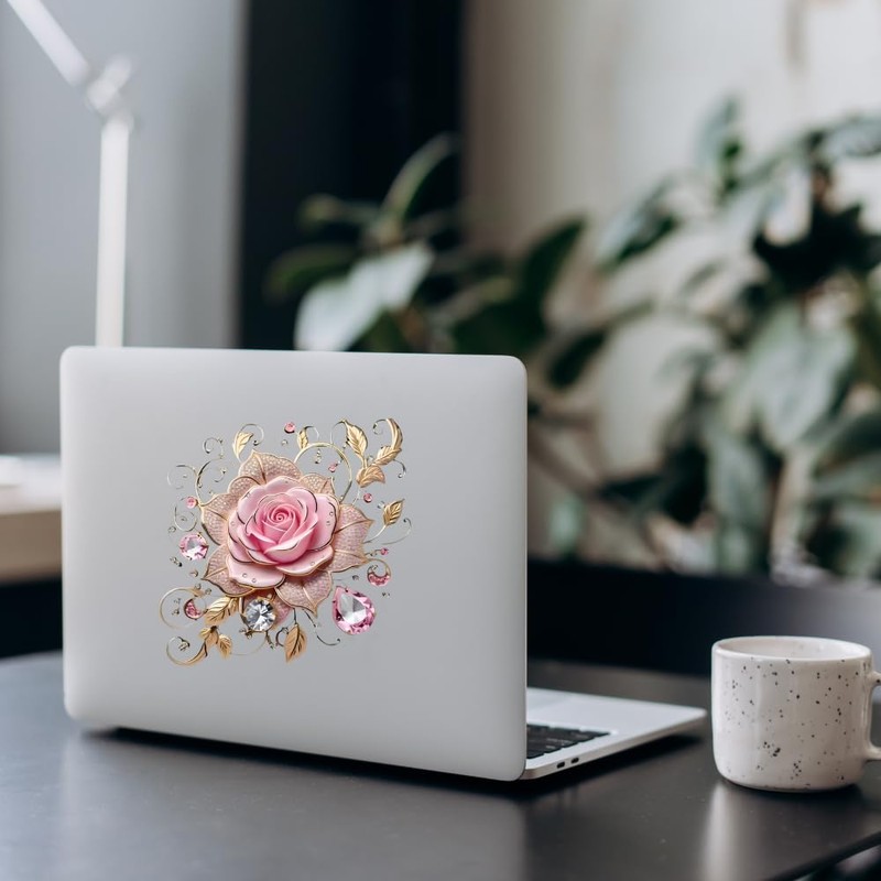 - PREMIUM MATERIALS: High-quality adhesive sticker with shimmering diamond-like elements and detailed floral artwork that catches and reflects light