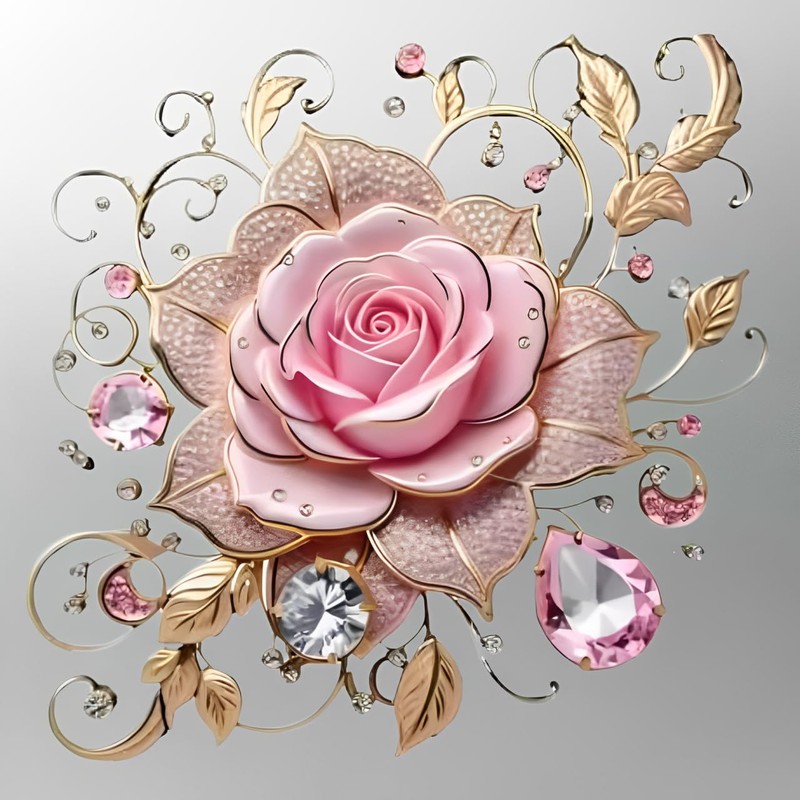 - ELEGANT DESIGN: Beautiful pink rose wall decal featuring delicate crystal rhinestone accents and graceful gold leaves for sophisticated home decoration
