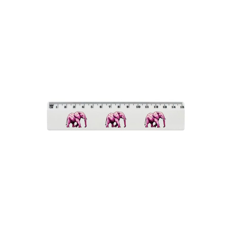 'Pink Spotted Elephant' 15cm (6 Inch) White Plastic Ruler (RL00086053)
