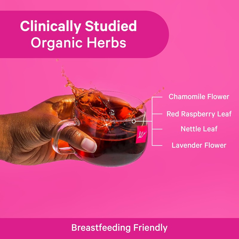 - PURE: We pride ourselves on our organic and natural ingredients such as Chamomile Flower + Lemon Verbena Leaf + Motherwort Leaf for postpartum wellness.