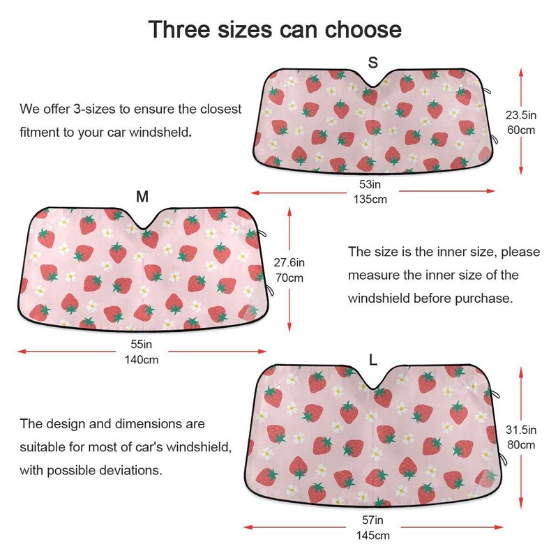 Pink Strawberry Flowers Car Windshield Sun Shade Women Girls Car Sun Visor for UV Rays and Sun Heat Protection Summer Fruits Blocks Heat and Sun Foldable Sun Shield 53x24 in Automotive Accessories