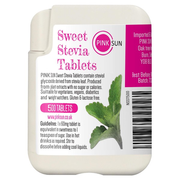 PINK SUN Stevia Tablets x 500 Tabs - Sweetener Sugar Alternative Replacement Vegetarian Vegan Gluten Free Low Carb Non GM Zero Calories - Or Bulk Buy Multi Pack Dispenser