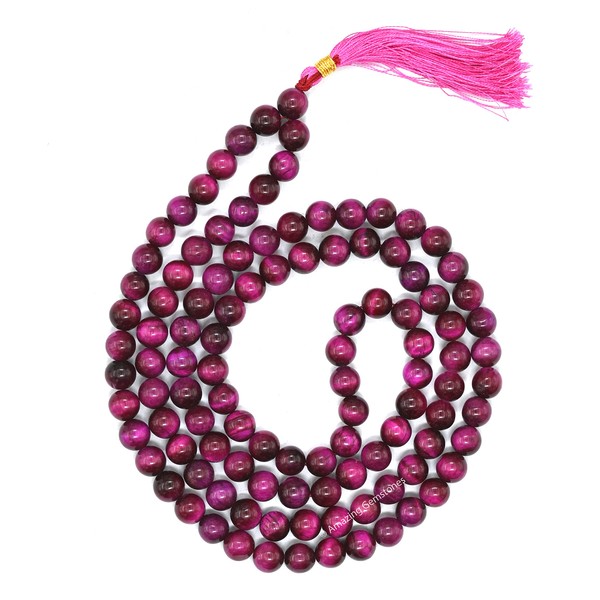 • Type : Pink Tiger Cats Eye Handmade Japa Mala, 108 Beads : 8mm, Length : 18-20 Inches