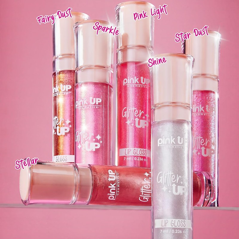PINK UP | Glitter Up | Gloss | Labial | Brillo hidratante | Efecto Húmedo | Con glitter para labios | Glitters de larga duración | Acabado tornasol y destellante | Color Shine | 7ml | PKGU4