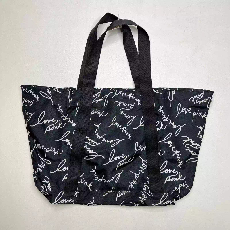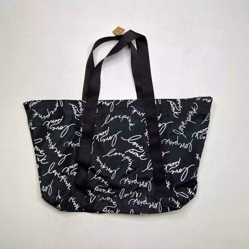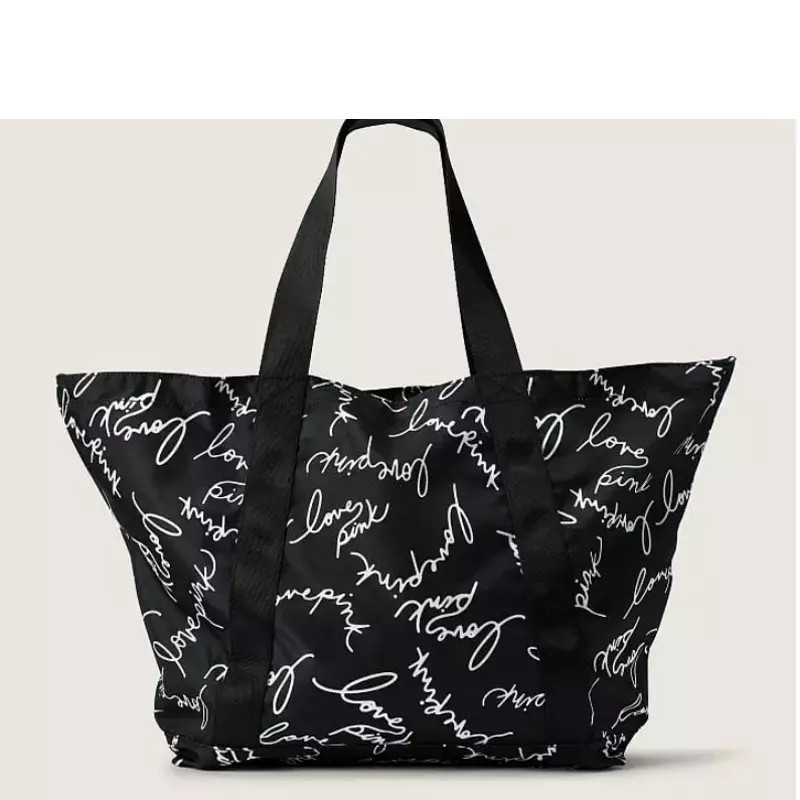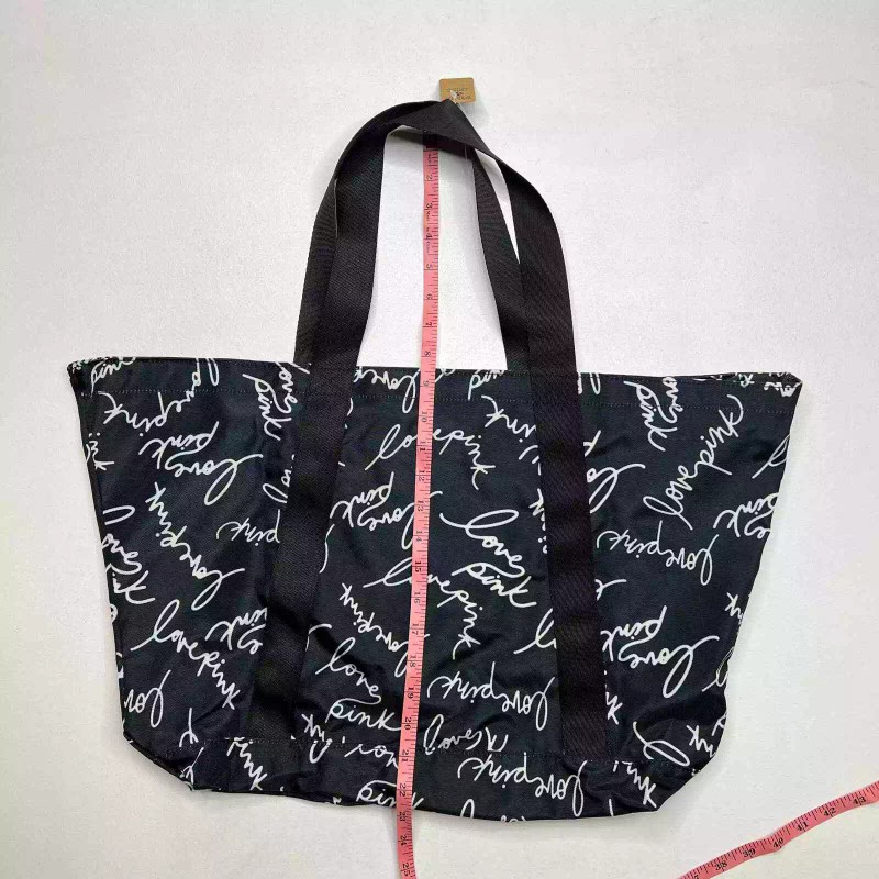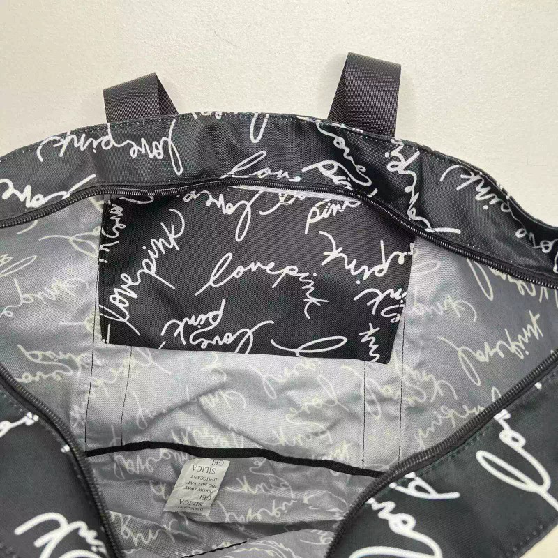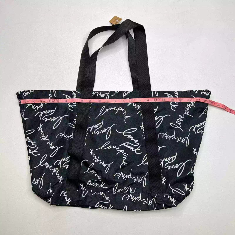 PINK Victoria's Secret Pink Black Script Logo Tote Zip Top Weekender Beach Bag