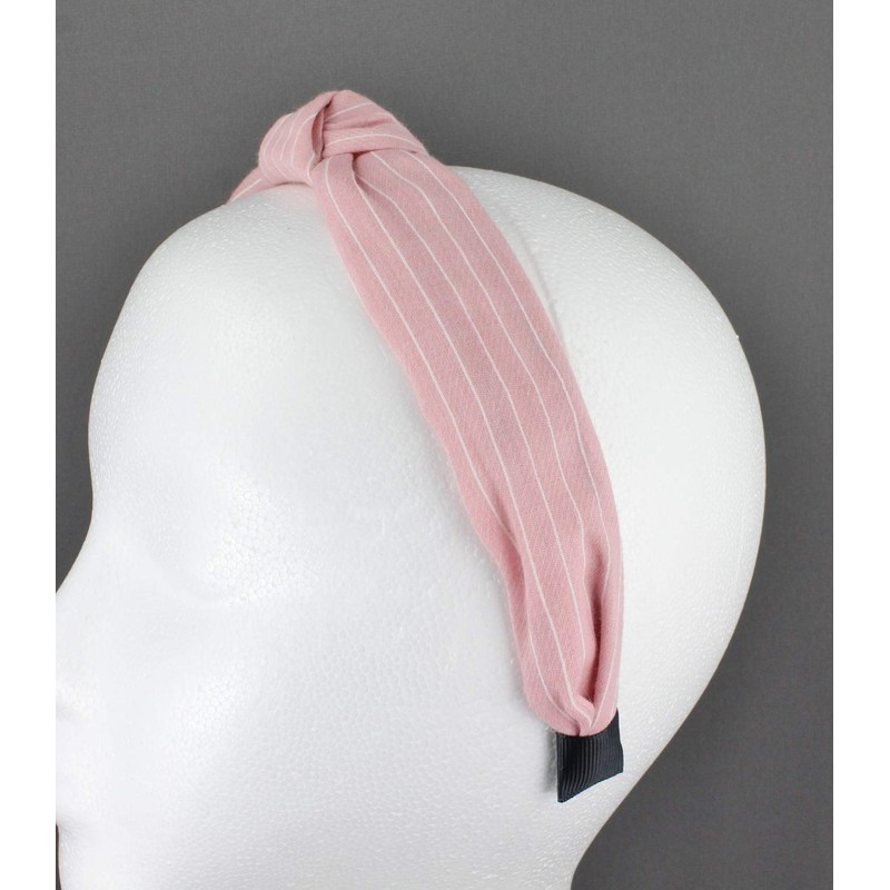 Pink White pinstripe turban knot headband stripe fabric covered band grip teeth
