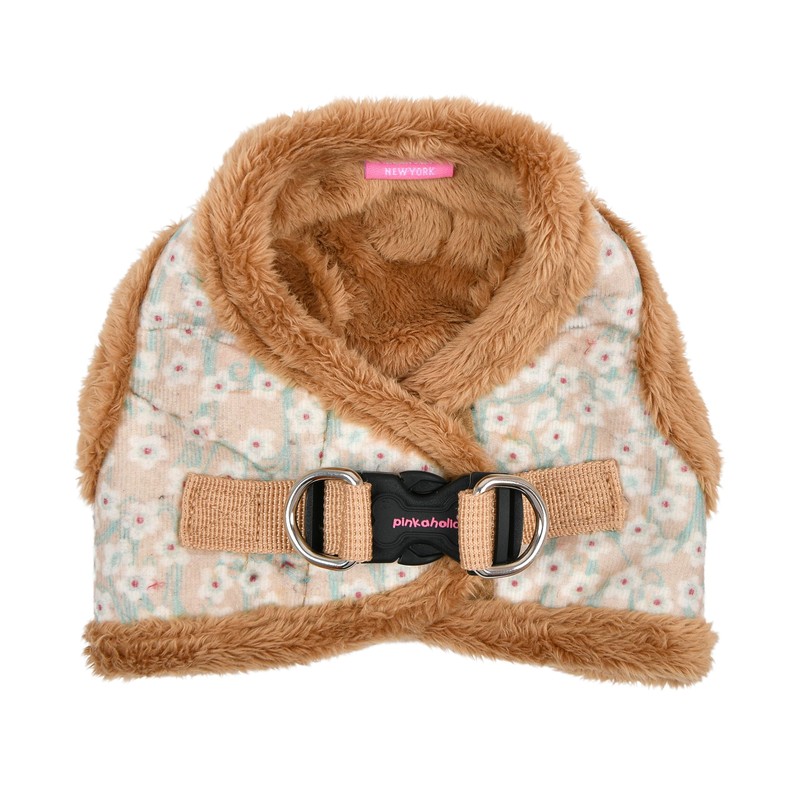 Pinkaholic New York Kalina Vest Dog Harness Step-in Warm Winter Flower Pattern for Small Dog, Beige, Small