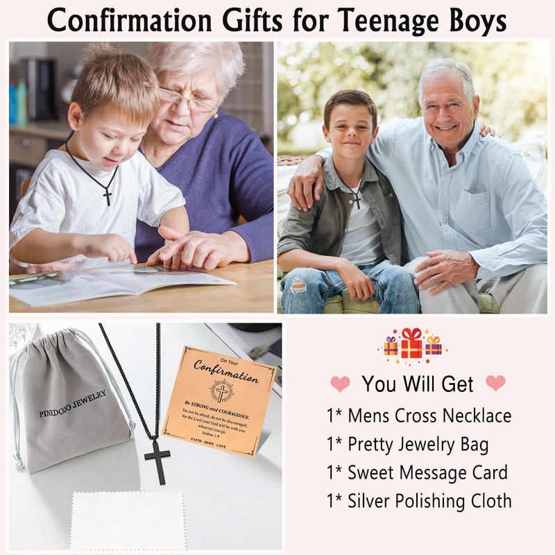 - Confirmation Gifts for Boys: It comes with a cross necklace, a meaningful card, and a velvet pouch. This thoughtful set makes an ideal gift for the confirmation for the son/grandson/nephew.
