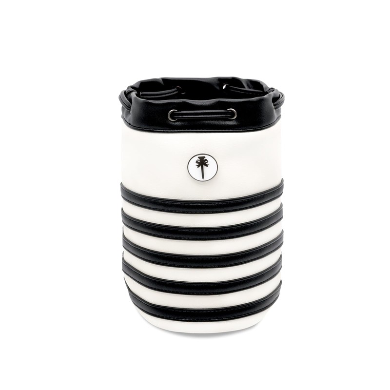 PINKTEE Golf Ball Sack Valuable Pouch Leather Bag Bucket Waist Design with Removable Magnetic Ball Marker, Black, Large Capacity