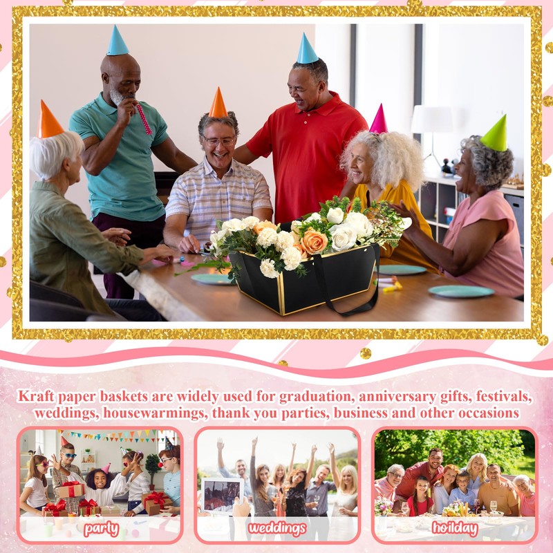 Pinkunn 48 Pcs Basket for Gifts Empty DIY Bulk Party Basket Kit with Handles Market Trays for Gift Packages Wrapping Wedding Baby Shower Graduation Party Anniversary Display(Black Gold)